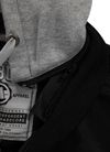 - odpinany dzianinowy kaptur w kolorze szary melanż z regulacją sznurkiem