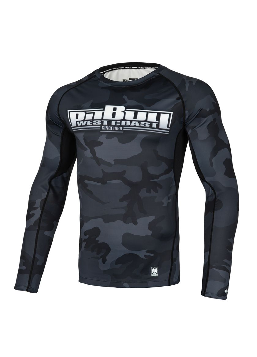 Techniczna męska koszulka sportowa typu longsleeve rashguard z najnowszej kolekcji marki PIT BULL WEST COAST – All Black Camo Boxing